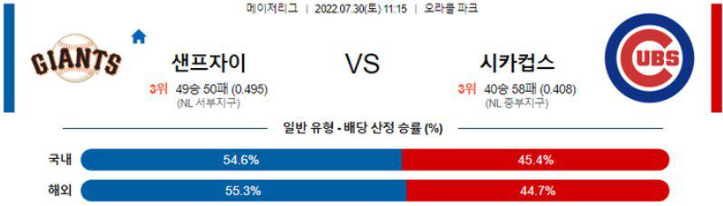【MLB】 7월 30일 샌프란시스코 vs 시카고 컵스