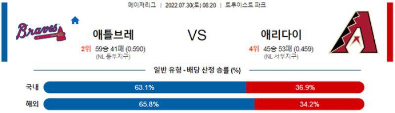 애틀랜타의 승리를 추천하는 경기다. 범가너도 기복은 있으되 클래스를 보여주고 있지만 하드히트 비중이 높아 장타 위주의 공격을 펼치는 애틀랜타 타자들에게 위기를 맞을 가능성이 높다. 올 시즌 라이트가 투구 리듬을 완전히 찾으면서 안정감을 보여주고 있다는 점을 고려하면 선발 마운드 싸움에서 애틀랜타가 우세할 가능성이 높다. 애틀랜타의 중심타자들도 타격감이 나쁜 편은 아니었다.