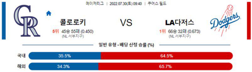 【MLB】 7월 30일 콜로라도 vs LA 다저스