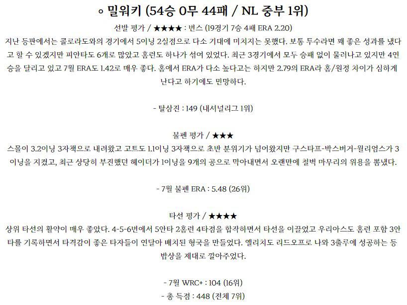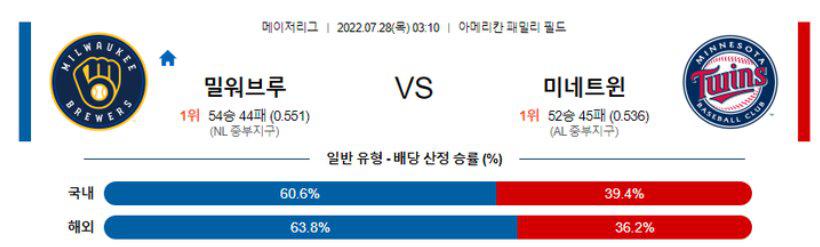 【MLB】 7월 28일 밀워키 vs 미네소타