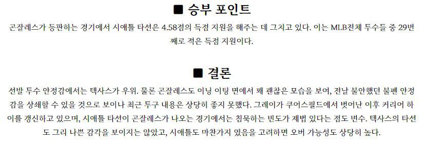 ◈두산(스탁 7승6패 3.01) 스탁 투수는 이전경기(7/22) 홈에서 SSG 상대로 7이닝 무실점 노디시전을 기록했으며 이전경기(7/13) 원정에서 NC 상대로 5.2이닝 4실점 패배를 기록했다. 2연패 흐름 속에 올시즌 KBO 무대 데뷔후 19경기 7승6패, 11경기 QS 성적이며 5월 5경기, 2승2패, 2.61, 6월 5경기 2승2패, 4.76,…