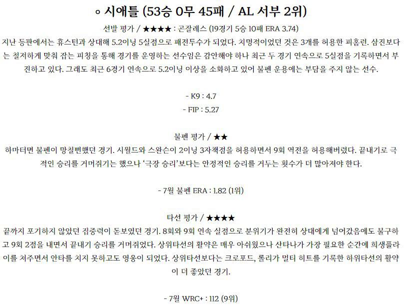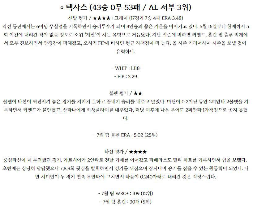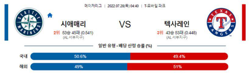 【MLB】 7월 28일 시애틀 vs 텍사스