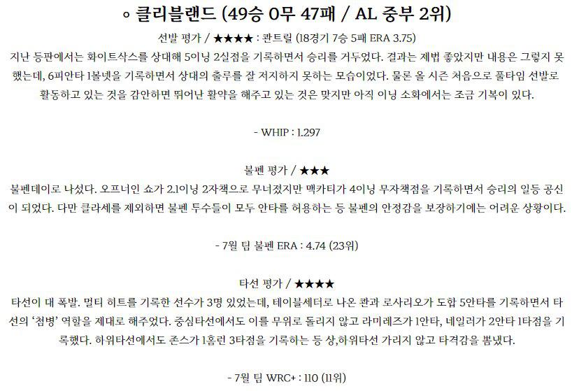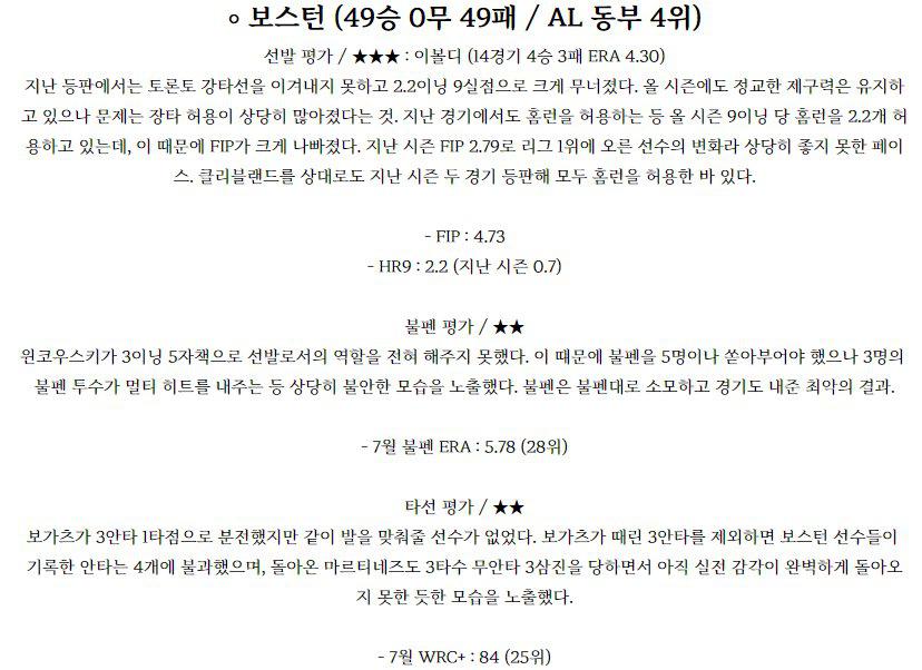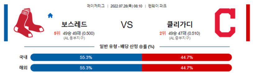 【MLB】 7월 28일 보스턴 vs 클리브랜드
