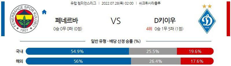 【UEFA CL】 7월 28일 페네르바체 vs 디나모 키예프