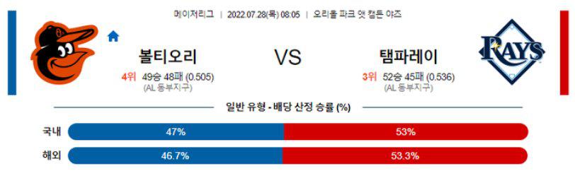 【MLB】 7월 28일 볼티모어 vs 템파베이