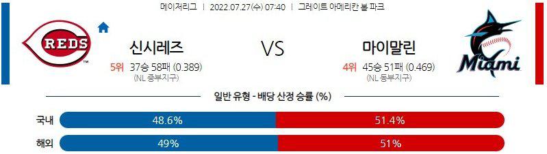 신시내티의 승리를 예측하는 것이 옳다고 본다. 최근 로페즈의 커맨드가 불안한 상황이고, 타자 친화 구장인 그레이트 아메리칸 볼파크에서 고전할 가능성도 상당히 크다. 신시내티 타자들의 컨디션이 굉장히 좋아보였고 홈에서는 타자 친화적인 구장 덕을 톡톡히 보고 있기도 하다. 마이애미의 타격과 비교하면 신시내티가 한 수 위의 모습을 보여줄 것으로 예상된다. 신시내티의 핸디(-1.5)승리도 스포츠중계 예측해볼 수 있겠다.