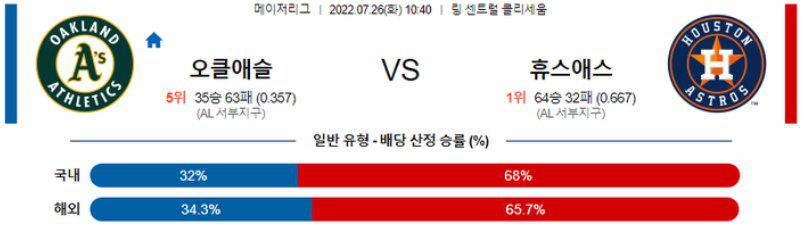 휴스턴의 승리가 유력한 매치다. 부상 이후 피홈런이 늘어난 모습은 걱정스럽지만 기본적으로 가지고 있는 이닝 소화력과, 오클랜드의 타격 능력을 감안하면 꽤 좋은 내용으로 경기를 펼칠 것을 기대해볼 수 있다. 팀 타선의 감각도 상당히 좋은 편이고, 특히 양키스와 시애틀 등 성적이 상당히 좋았던 팀들을 상대로 연승을 이어가고 있기에 기세도 상당히 살아있는 상황이다. 오버와 휴스턴의 승리를 점칠 수 있는 매치.