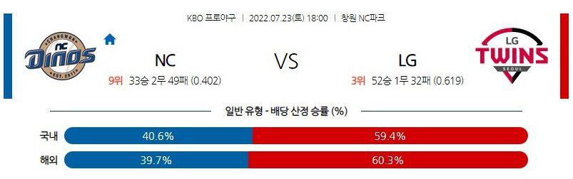 오영수 3점포와 김주원 결승타가 나오면서 5-4, 역전승을 기록하며 상대전 6연패를 끊는데 성공한 NC 이지만 이용준 선발 카드는 많이 불안해 보인다. LG 승리 가능성을 추천 한다.