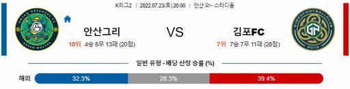 최근 흐름은 매우 좋은 편. 앞선 리그 7경기에서 단 1패밖에 허용하지 않고 있다. 해당 1패도 페이스가 매우 좋은 상위 레벨인 안양을 상대로 홈에서 허용한 패배. 특히나 원정에서는 2연승과 함께 3경기 연속 패배가 없다. 리그 순위도 7위까지 끌어올렸다.김포의 시즌 초반과 중반은 매우 다른 기조다. 시즌 초반에는 적극적인 압박도 마다하지 않는 공격적인 운영으로 득, 실점 주소모두 많이 기록했지만, 이내 신생팀이기 때문에 얇은 스쿼드에 체력적인 한계를 느끼며 다소 수비적인 기조로 변화를 가져갔다. 이는 나름대로 잘 먹혀 들어 최근 4경기 중 3번의 무실점을 기록하고 있는 중. 심지어 리그 최다 득점 2위 팀 광주를 상대로도 무실점을 거뒀다. 여기에 공격 쪽 윤민호(FW, 최근 5경기 1골 1도움), 손석용(FW, 최근 5경기 1골 2도움)이라는 확실한 조합도 갖추고 있다. 이번 일정도 최하위권인 안산을 상대로 좋은 흐름을 이어갈 것으로 보인다.