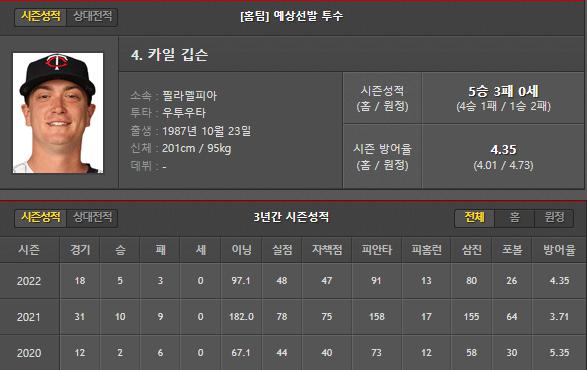이번 시즌 원정에서 6경기 등판했고 0승 2패 방어율 5.86으로 원정만 가면 흔들리는 경기들이 많았습니다.