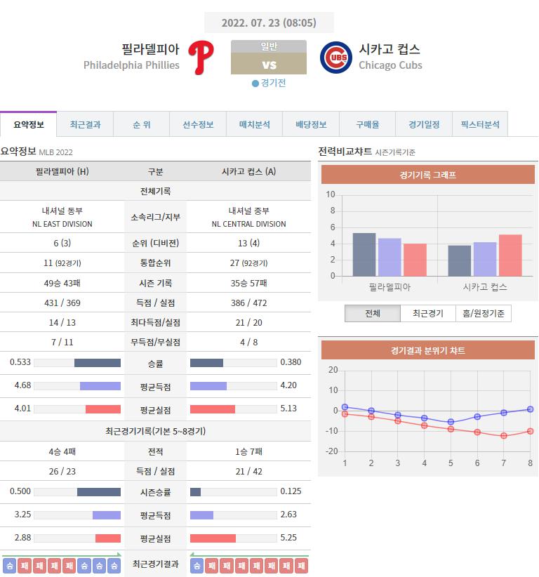 필라델피아 VS 시카고 컵스