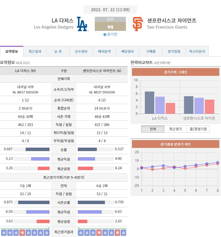 오늘 MLB 분석은 LA다저스 VS 샌프란시스코 분석 준비했습니다.