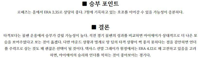 안녕하세요 스포츠 리포터 세린입니다. 오늘 NPB 분석은 마이애미 VS 텍사스 분석 준비했습니다. 분석글은 라인업 확인 전 초안입니다! 최종 경기 조합 픽이나 분석 영상은 유튜브 [스포츠 리포터 세린] 검색 후 확인 해주시면 감사하겠습니다! 마이애미 VS 텍사스 [마이애미] 마이애미는 이번 경기 파블로 로페스 선수가 선발로 등판합니다. 로…