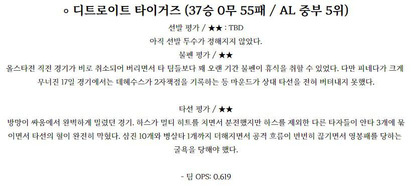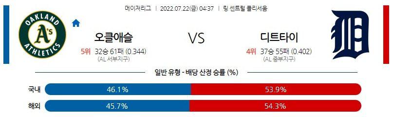 【MLB】 7월 22일 오클랜드 vs 디트로이트