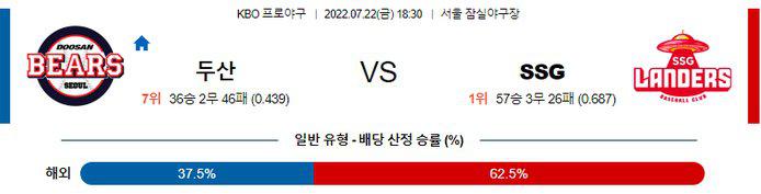 6연승의 상승세 속에 전반기 일정을 마무리한 SSG가 평균자책점 1위를 기록중인 김광현 투수를 출격시키는 경기. 선발 싸움과 타선의 기대치에 SSG가 우위에 있다. SSG 승리 가능성을 추천 한다.