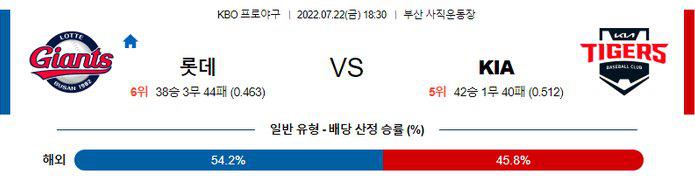 4연승의 상승세 속에 전반기를 마무리한 롯데가 선발 싸움에서 우위에 있는 경기다. 롯데 승리 가능성을 추천 한다.
