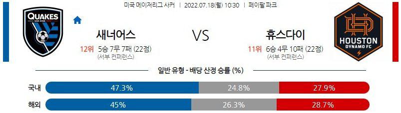 산호세가 최근 3경기 연속 오버(2.5 기준)가 나온 점, 휴스턴도 최근 4경기 연속 오버(2.5 기준)를 기록하고 있다는 점을 고려하면 오버(2.5 기준)의 가능성이 높겠다. 또한 산호세는 최근 흐름도 좋을 뿐더러 이번 시즌 확실한 컨셉으로 홈에서도 단 1패밖에 허용하지 않고 있다. 여기에 휴스턴은 최근 매우 좋지 못한 수비력으로 8경기에서 1승밖에 거두지 못하고 있기 때문에 이번 일정도 산호세의 승리가 예상된다.