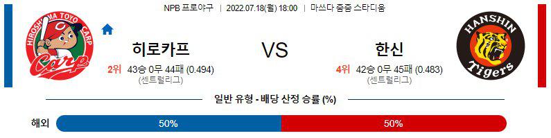 최근 한신의 타격은 그다지 좋다고 하기 어렵다. 특히 주말 시리즈의 부진이 변수가 될수 있을듯. 게다가 유독 마츠다 줌줌 원정의 궁합도 좋지 않은게 고민스러울 것이다. 야부타나 키리시키 주소모두 선발로서의 기대치는 낮은 편이지만 현 시점에서 화력전을 하면 유리한건 결국 히로시마다. 힘에서 앞선 히로시마 토요 카프가 승리에 가까이 있다.