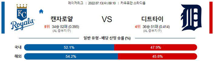 디트로이트의 승리를 본다. 부비치가 나아진 투구를 하는건 분명하지만 힘있는 우타자 상대로 던지는 패스트볼의 피안타율이 너무 높다. 디트로이트 타선에서 카브레라와 칸델라리오, 바에즈등이 충분히 타구를 외야로 보낼 수 있을 것이다. 브리에스케가 안정적인 피칭을 하는 점도 감안해야 한다.