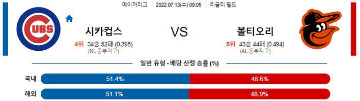 컵스의 승리를 본다. 볼티모어가 만치니와 서베리노, 산탄데르와 멀린스등 핵심 타자들을 앞세워 타격전을 가져가려 하겠지만 컵스는 타선에서 밀리는 팀이 아니다. 올스타 선발 포수인 콘트레라스를 비롯해 스즈키 세이야와 위즈덤등이 충분히 라일스를 공략할 수 있다. 볼티모어가 브레이킹볼 위주로 볼배합을 가져가는 우완에게 약한 것도 승부를 가를 요인이다.