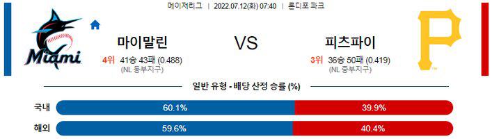 【MLB】 7월 12일 마이애미 vs 피츠버그