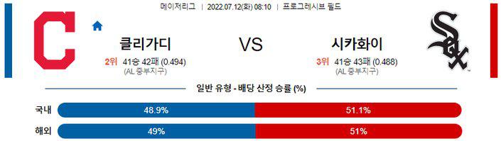 【MLB】 7월 12일 클리블랜드 vs 시카고 화이트삭스