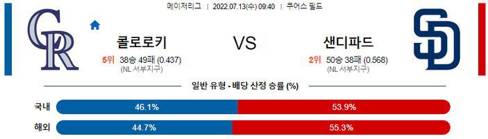샌디에이고의 승리를 본다. 샌디에이고의 마무리인 로저스 상대로 콜로라도가 시리즈 1차전 9회말에 추격의 점수를 올리긴 했지만 거기까지였다. 김하성과 프로파등이 부상으로 최근 결장함에도 에이브람스가 자리를 잘 메우고 있고 마차도와 크로넨워스가 장타를 가동할 샌디에이고가 유리한 경기다. 클레빈저의 안정감 있는 피칭도 기대할만 하다.