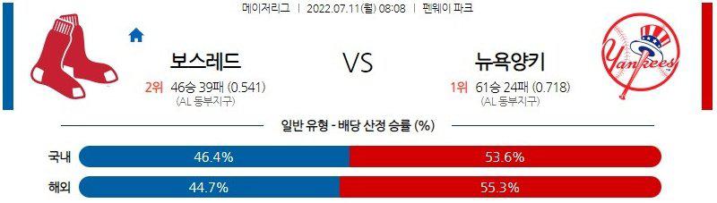 【MLB】 7월 11일 보스턴 vs 뉴욕 양키스