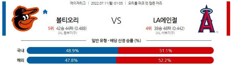 【MLB】 7월 11일 볼티모어 vs LA 에인절스