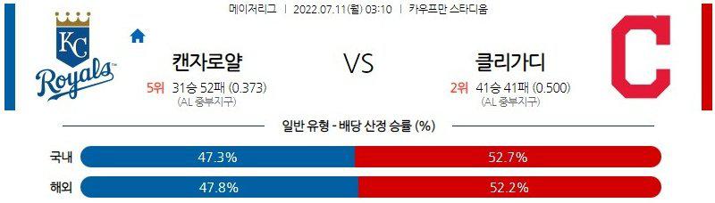 【MLB】 7월 11일 캔자스시티 vs 클리블랜드