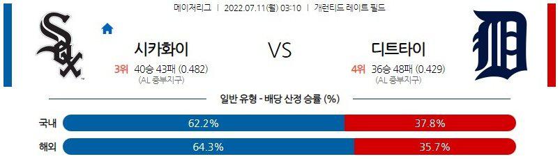 【MLB】 7월 11일 시카고 화이트삭스 vs 디트로이트