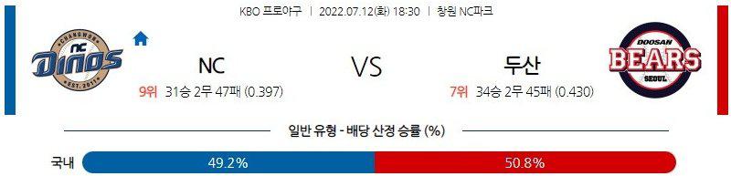신민혁 투수는 직전경기(7/6) 원정에서 한화 상대로 5이닝 2실점 노디시전을 기록했으며 이전경기(6/26) 원정에서 SSG 상대로 5.1이닝 2실점 노디시전을 기록했다. 올시즌 13경기 2승5패, 7경기 QS, 4경기에서 5이닝을 채우지 못한 성적이며 5월 4경기 2승1패, 2.52, 6월 4경기 승패없이 2.45, 7월 1경기 승패없이 3.60의 기록. 올시즌 12차례 등판중 5경기에서 높은 피안타 허용률을 허용하는 부진한 모습을 보여지만 점검의 시간을 보내고 복귀한 이후에는 9경기중 6경기에서 QS를 기록하는 가운데 8경기에서 자신의 몫을 해내며 지난시즌 서클 체인지업의 변화와 제구가 업그레이드 되면서 NC 마운드 최고의 히트작이 되었던 투수의 부활을 신고했다. 올시즌 홈에서 7경기 1승3패, 4.35 올시즌 상대전 1경기 1패, 1.29, 7이닝 1실점 기록이 있다.