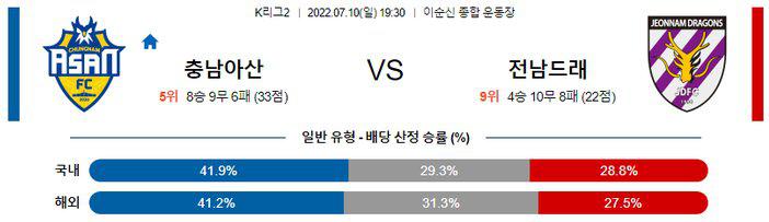 【K리그2】 7월 10일 충남 아산 vs 전남 드래곤즈