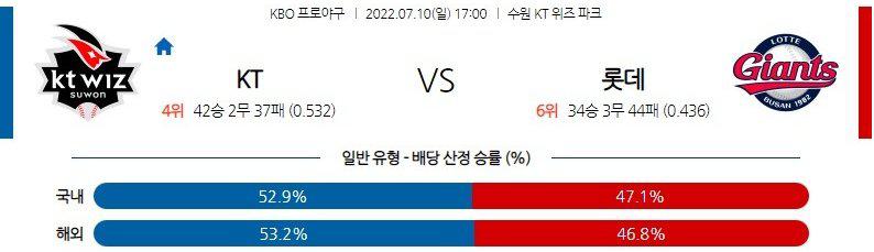 6연승에 성공한 KT와 전일 결정적인 실책을 범하며 3연패에 빠진 롯데의 상반 된 팀 리듬이 롯데 승리 구간을 주력으로 선택하는데 있어서 장애물이 되지만 최든 2경기 연속 QS를 기록하며 페이스를 회복한 박세웅 투수에 대한 기대치가 높은 선발 매치업 이다. 롯데 승리 가능성을 추천 한다.