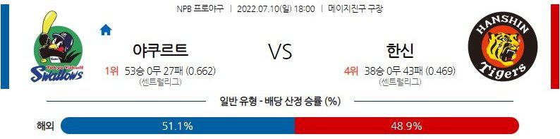 토요일 경기가 우천으로 취소 된 가운데 토요일 경기 선발로 예정되었던 사이 스니드와 이토 마사시 투수가 그대로 일요일 경기에 출격하는 상황. 선발 일정이 밀리게 된 것이 불펜과 타선의 리듬에서 야쿠르트에게 유리하게 작용할 것이다. 야쿠르트 승리 가능성을 추천 한다.
