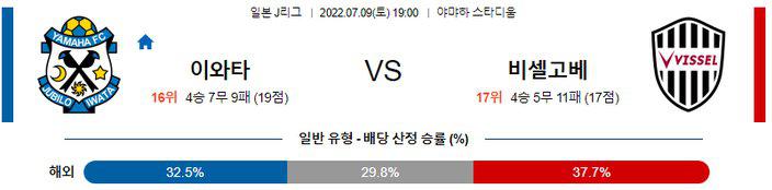 고베의 승리를 점친다. 새로운 감독을 선임하고 이적시장에서도 빠르게 전력을 보강하면서 팀을 안정화시키는 데 성공했다. 최근 이와타가 공수에서 주소모두 좋지 못한 모습을 보이고 있고, 특히 측면 수비에 문제가 심각해 고베가 최근 보여주고 있는 크로스 위주의 공격이 효과적으로 통할 가능성이 높다. 다만 고베도 다소 보수적으로 경기를 운영하고 있음을 감안하면 경기가 다득점 페이스로 이어질 가능성은 적다.