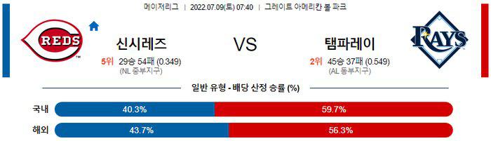 탬파베이의 승리를 본다. 카스티요도 맥클라나한 못지 않은 투수로 커리어 상으로는 외려 압도한다. 그러나, 맥클라나한은 이번 시즌 양대 리그를 통틀어 최고의 피칭을 하고 있다. 그를 처음 상대하는 타자가 대다수인 신시내티로써는 공략에 어려움을 겪을 것이다. 탬파베이는 디아즈와 아로자레나. 키어마이어등이 최지만과 함께 보스턴 시리즈 이후 살아났기에 득점을 기대할만 하다.