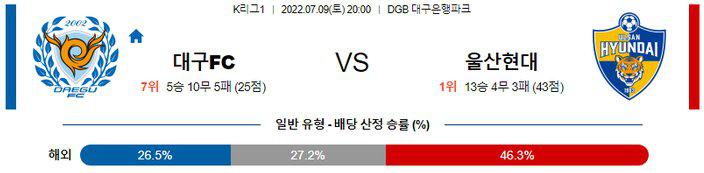 [K리그1] 7월 9일 대구 FC vs 울산 현대