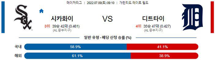화이트삭스의 승리를 본다. 클블전 스윕에 이어 화이트삭스 원정 1차전도 잡아낸 디트로이트의 페이스가 대단한건 사실이지만 스쿠발의 최근 부진이 심각하다. 여전히 리그 최정상급 속구를 뿌리며 타자를 윽박지르고 있지만 장타 허용이 늘어났기에 앤더슨과 로버츠가 실투를 놓치지 않을 것이다.