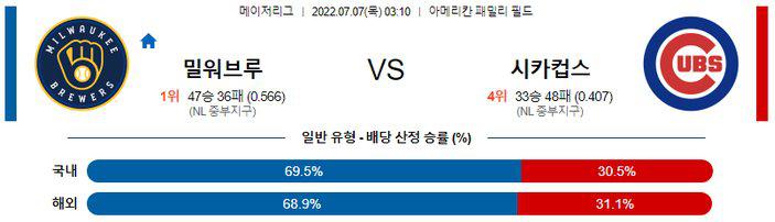 【MLB】 7월 7일 밀워키 vs 시카고 컵스