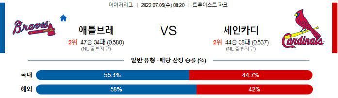 세인트루이스의 승리를 본다. 앤더슨은 최근 컨트롤 불안으로 인해 솔리드한 선발의 모습을 전혀 보이지 못하고 있다. 골드슈미트와 애드먼이 이끌 세인트루이스 타선이 충분히 공략할 수 있다. 애틀랜타는 타선의 힘이 좋지만 낯선 팔란테 상대로 적응에 시간이 필요할 것이다.