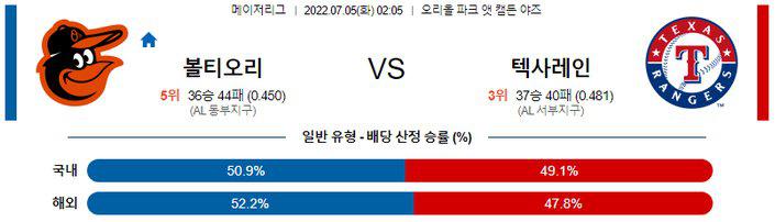 【MLB】 7월 5일 볼티모어 vs 텍사스