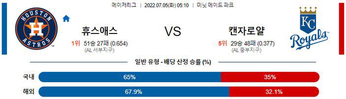 【MLB】 7월 5일 휴스턴 vs 캔자스시티