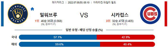 【MLB】 7월 5일 밀워키 vs 시카고 컵스