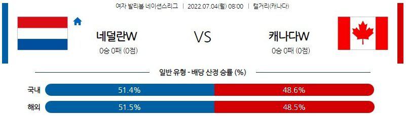 공격 옵션에서 네덜란드가 좀 더 우위다. 에이스 앤 뷰이스를 비롯해 플뢰르 사벨코엘, 플락 셀레스테 등 윙 스파이커가 에이스급은 없어도 고만고만한 레벨은 많은 편이다. 반대로 캐나다는 투맨 팀에 가까운 편이라서 공격 자원에서 한계가 보인다. 여기에 직전 스포츠중계 경기에서 네덜란드가 센터라인 쪽 득점으로 재미를 본 점을 생각하면 센터라인 우세도 네덜란드에 있다 판단된다. 네덜란드의 승리를 예상하는데, 그래도 에이스 카드 쪽은 캐나다가 나아서 핸디캡 승리는 +1.5세트를 받은 캐나다를 봐도 좋을 듯하다. 5세트 가능성도 꽤 있는 경기이므로 185.5점 오버부터 봐야 한다.