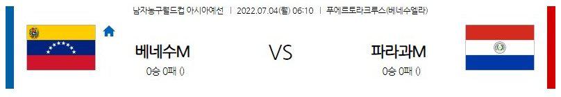 베네수엘라의 승리를 본다. 콜메나레스가 골밑에서 확실하게 보드 장악을 해줄 것이고 소호는 내,외곽을 오가며 득점을 만들 수 있다. 홈의 이점을 떠나 전력의 확실한 우위가 있는 베네수엘라가 승리하고 1위를 예선 1라운드를 마칠 것이다. 파라과이의 저득점을 보기에 언더 경기다.
