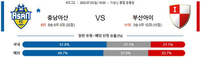 【K리그2】 7월 3일 충남 아산 vs 부산 아이파크