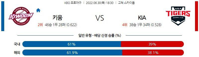 전일 팽팽한 투수전 흐름에서 1-0, 승리를 기록하며 4연승에 성공한 키움이 에이스 선발 카드를 꺼내는 경기다. 또한, 키움 중심 타선이 한승혁 투수를 상대로 좋은 상대성을 보였다는 것을 기억하자. 키움 승리 가능성을 추천 한다.