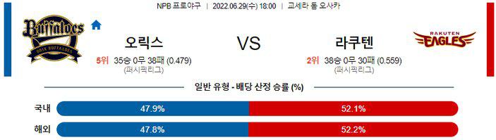 [NPB] 6월 29일 오릭스vs 라쿠텐