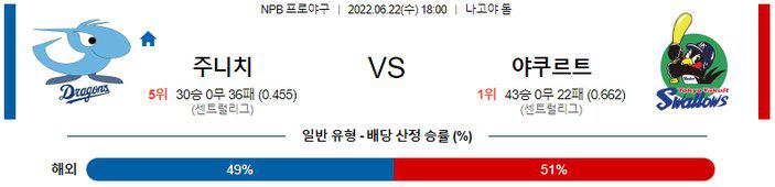 【NPB】 6월 22일 주니치 vs 야쿠르트